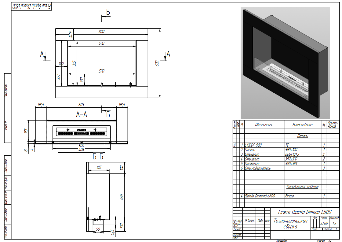 • Базовые размеры камина: 800x200x600 мм