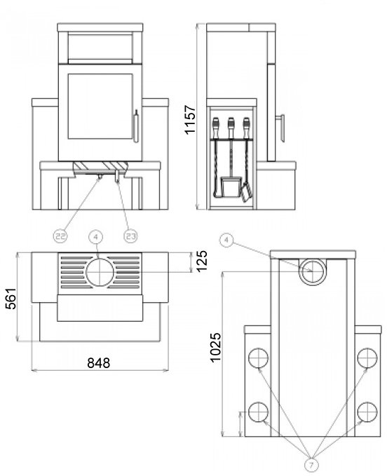 - Диаметр дымохода, (мм) 150