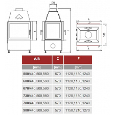 • Декоративная стеклянная панель типа glass, которая выдерживает температуру до 660 °C и предоставляет камину современного и элегантного вида, оптически увеличивает переднюю часть топки.