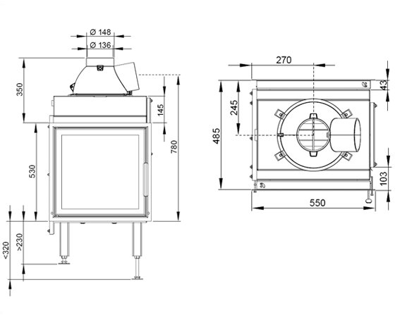 - Диаметр дымохода, (мм) 150
